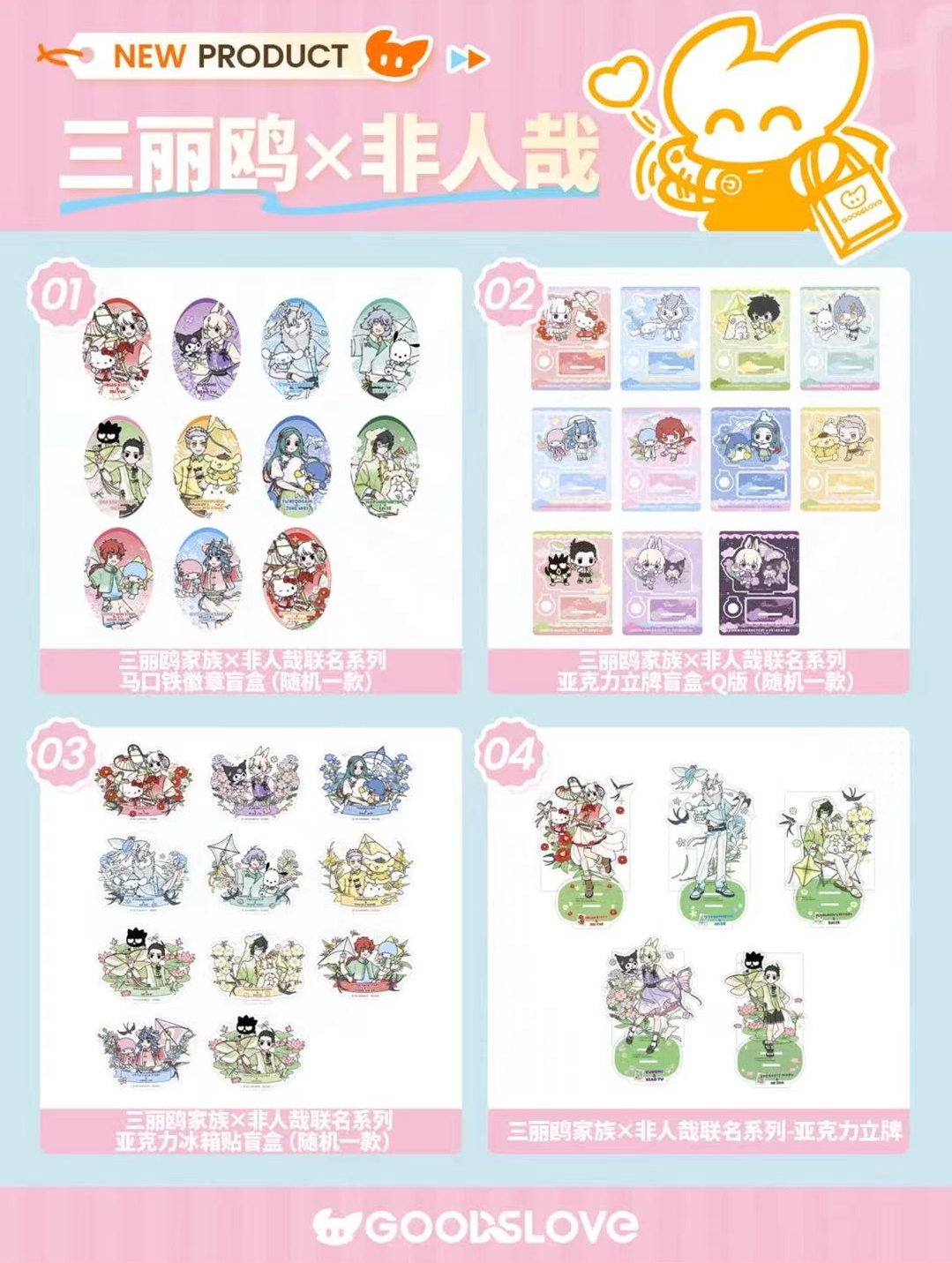 三麗鷗sanrio x 非人哉 聯名周邊 徽章立牌冰箱貼透卡拍立得鐳射票