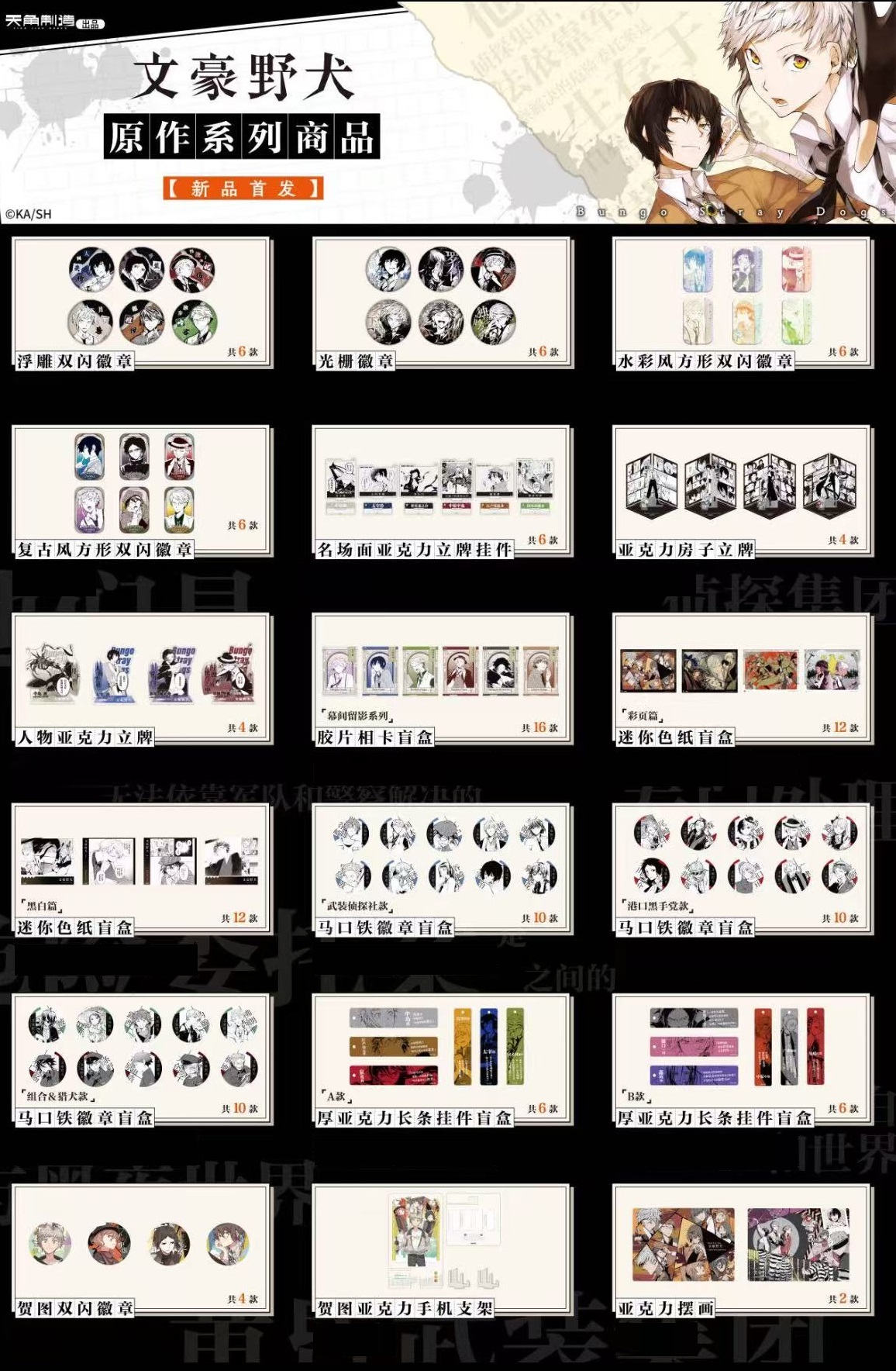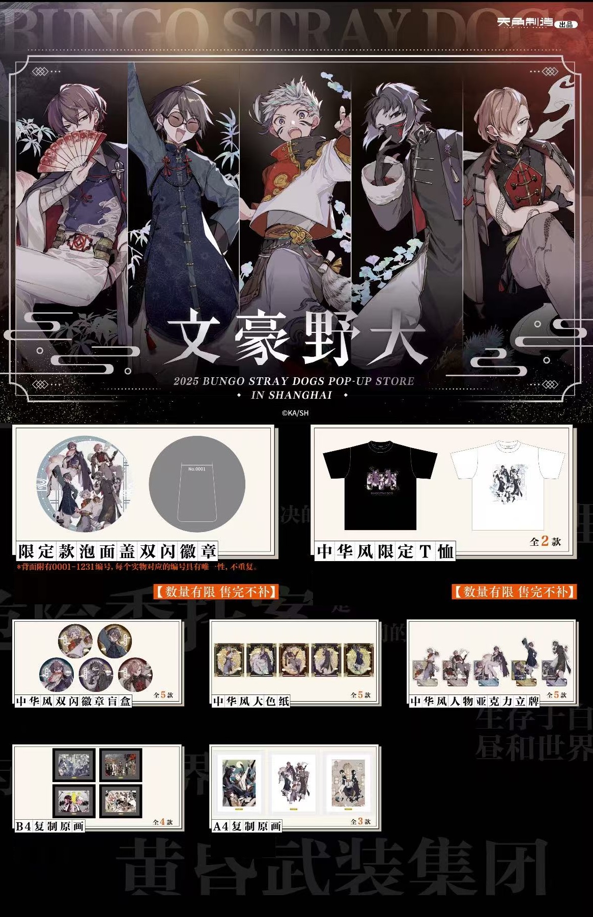 【補貨通販】文豪野犬 上海限定快閃 新品 大博覽會第二幕 徽章 立牌 色紙 掛畫 盲盒